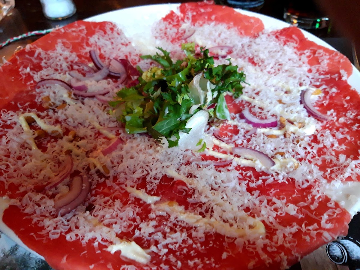 One of the standout dishes on the menu is their signature carpaccio. This tender, thinly sliced beef dish is topped with a delicious blend of ingredients, offering a perfect balance of flavors. It’s a favorite for both locals and visitors alike, and its combination of freshness and richness makes it a must-try for anyone dining here. Paired with a glass of wine or a signature cocktail, it’s the perfect way to kick off your meal.